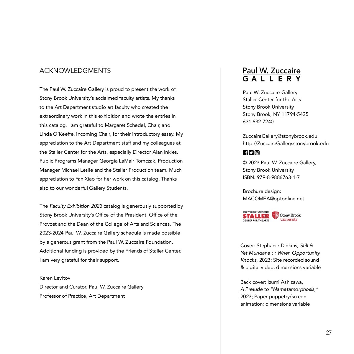 Staller Center for the Arts, first floorStony Brook University, Stony Brook, NY 11794-5425